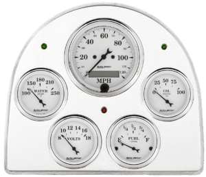1934 Chevy Master Aluminum Gauge Panel w/ Auto Meter Street Rod Series Gauges (Speedo/Tach)