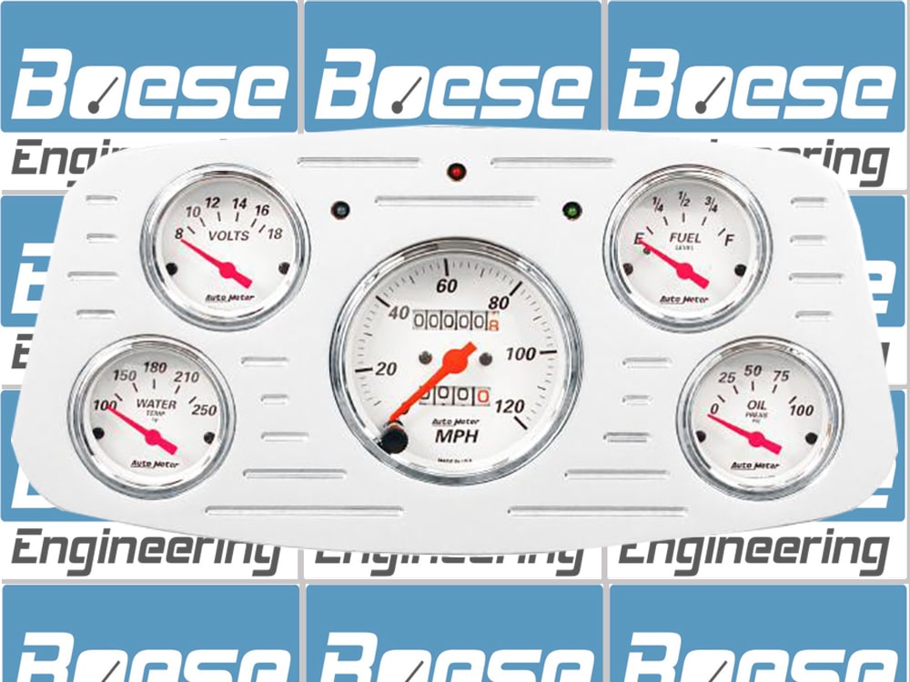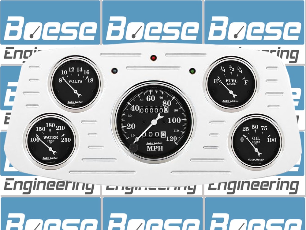Includes aluminum dash insert, Auto Street Rod series gauges & turn signal/high beam indicators.