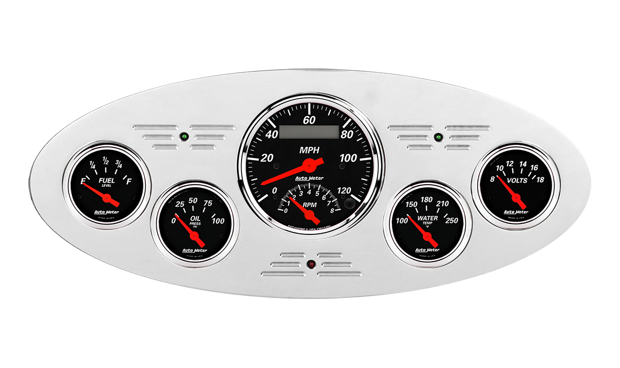1933-1934 Plymouth Billet Aluminum Gauge Panel w/ Auto Meter Street Rod Series Gauges (Speedo/Tach)
