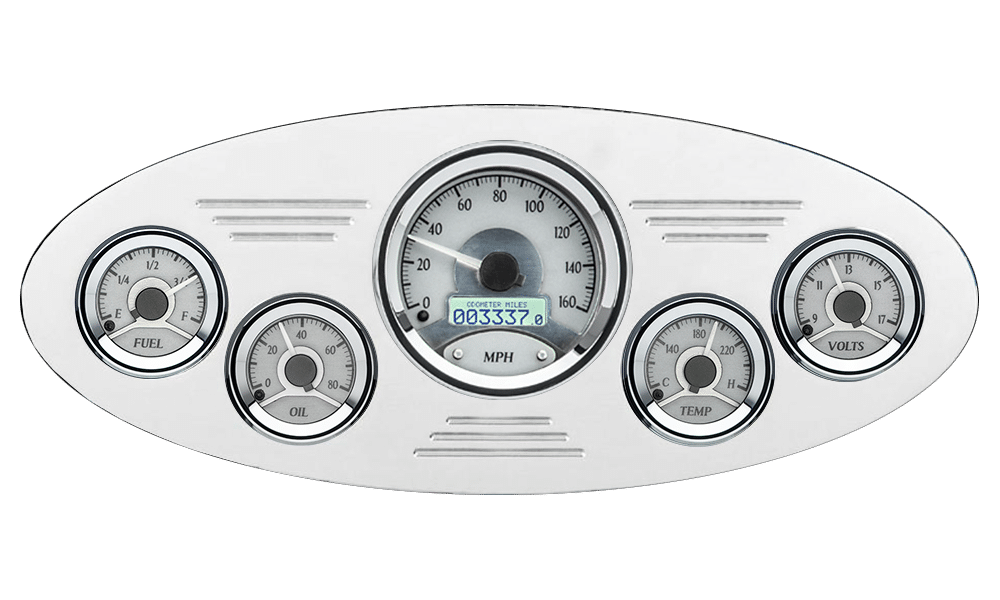 1933-1934 Plymouth Billet Aluminum Gauge Panel w/ Dakota Digital VHX-1050 Silver Alloy Gauges