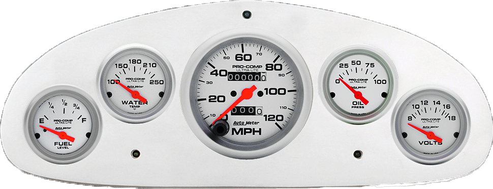 Includes aluminum gauge panel, Auto Meter Ultra-Lite gauges, & LED lights (turn signal & high beam indicators).