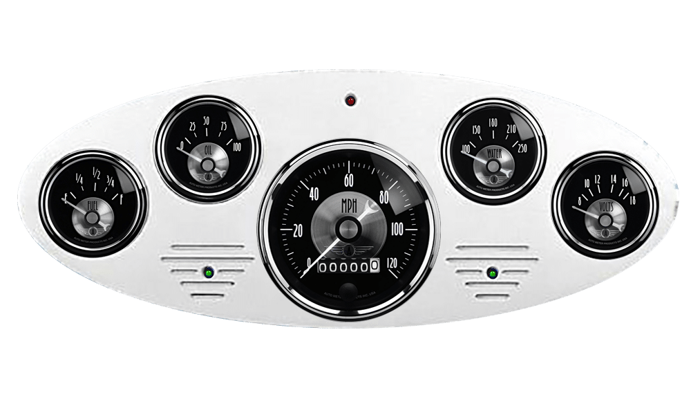 1934 Chevy Master Billet Aluminum 5 Gauge Panel w Auto Meter Prestige Series