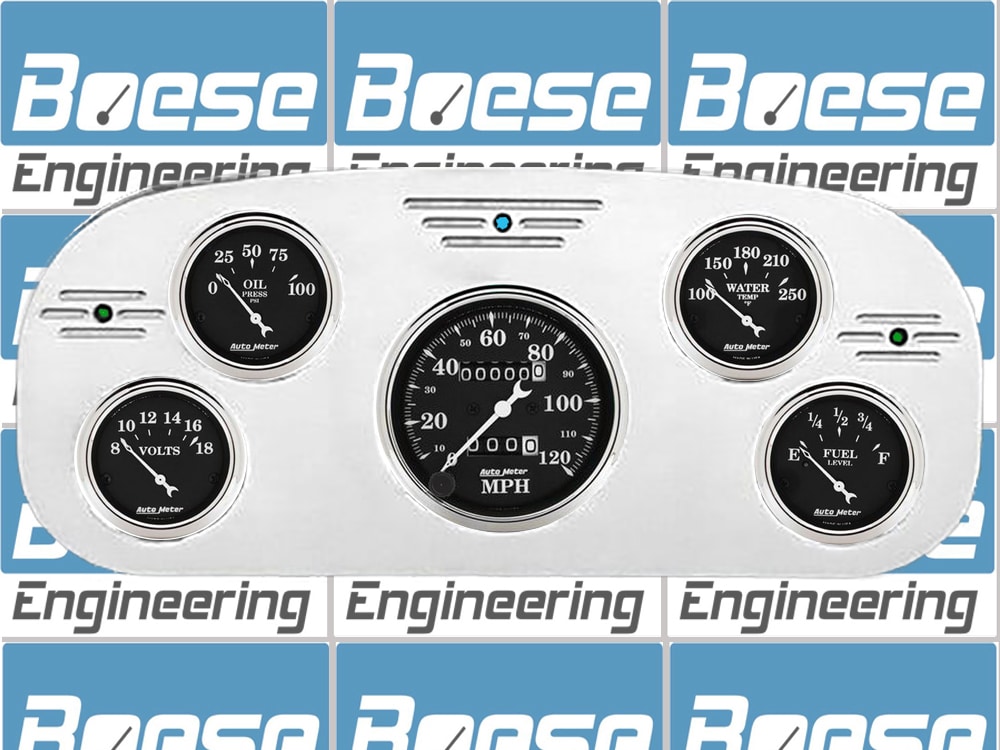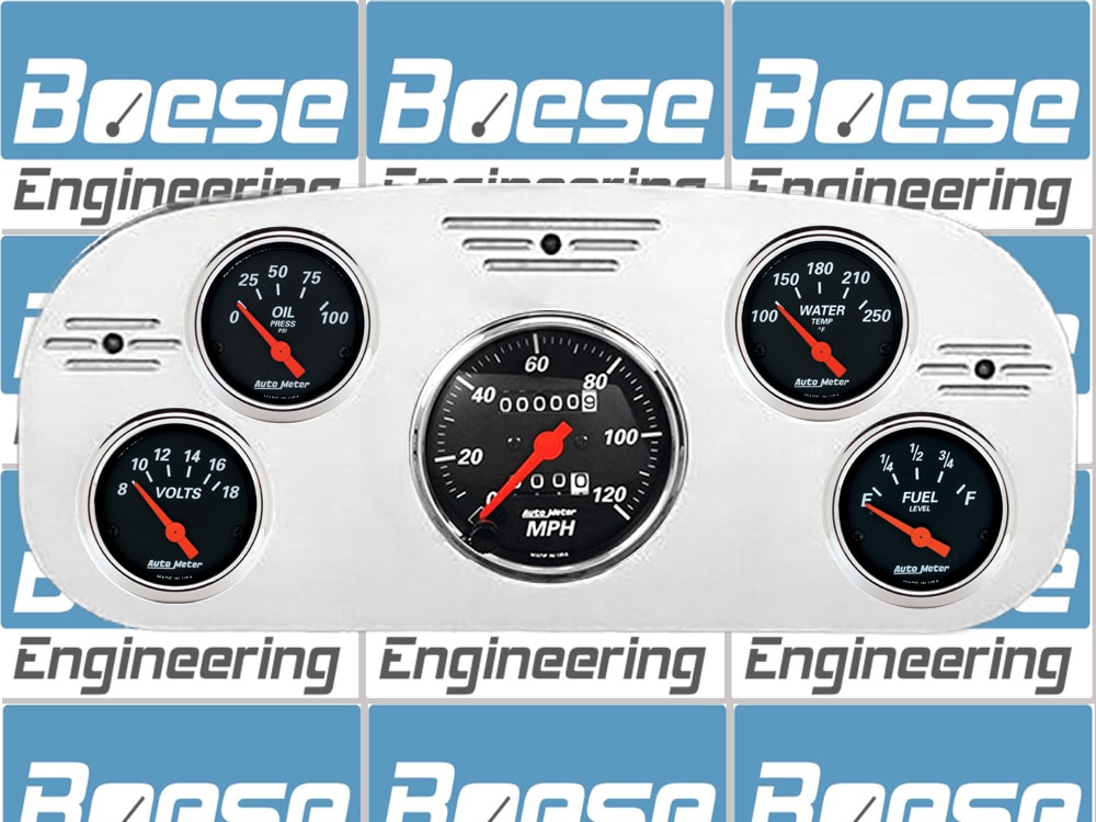 Includes aluminum dash insert, Auto Street Rod series gauges & turn signal/high beam indicators.