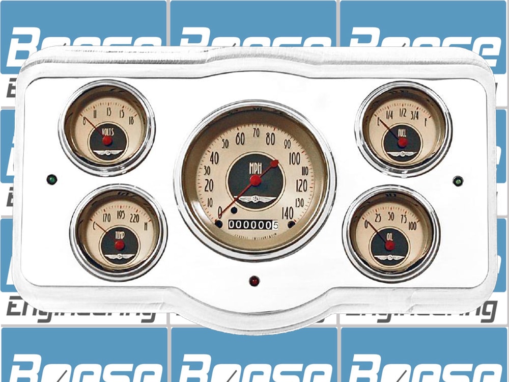Includes aluminum dash insert, Classic Instruments gauges & LED lights (turn signal & high beam indicators).