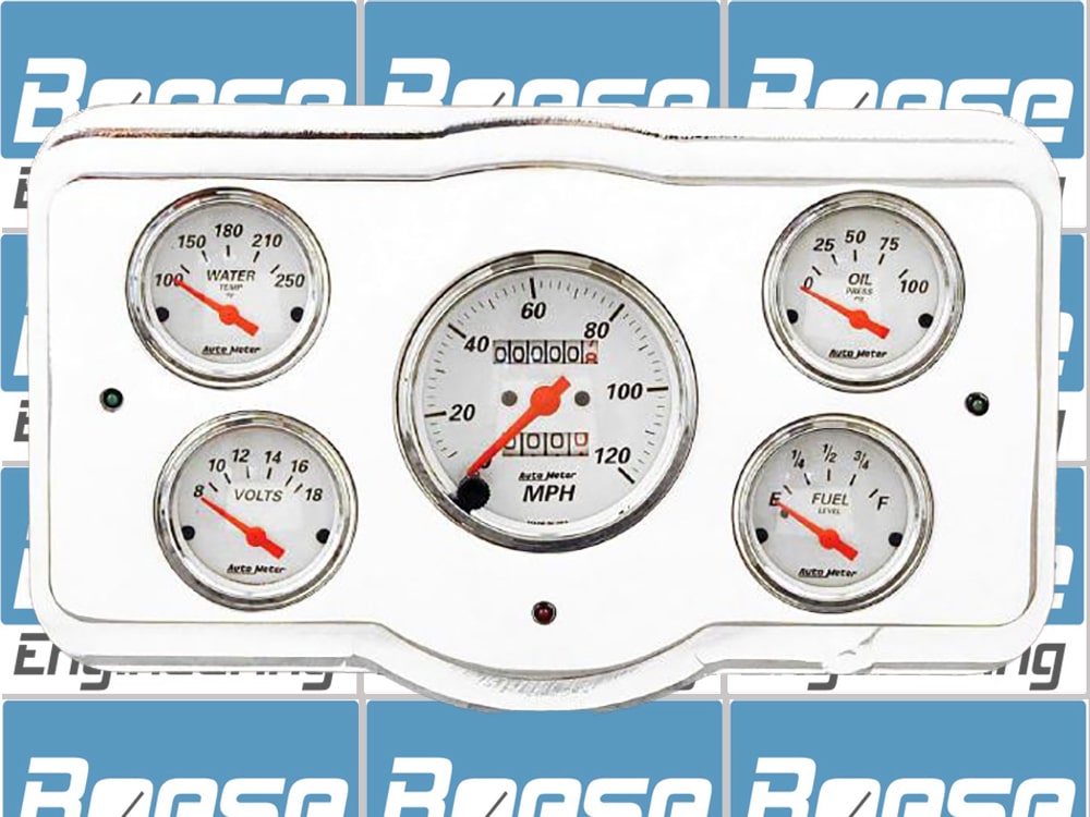 1951-1952 Plymouth Car Aluminum Gauge Panel w/ Auto Meter Arctic White Gauges