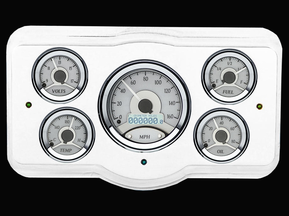 Includes aluminum dash insert, Dakota Digital VHX-1050 Silver Alloy 5 gauge round kit.