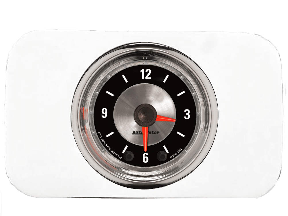Includes aluminum clock insert & Auto Meter American Muscle 2 1/16″ quartz clock