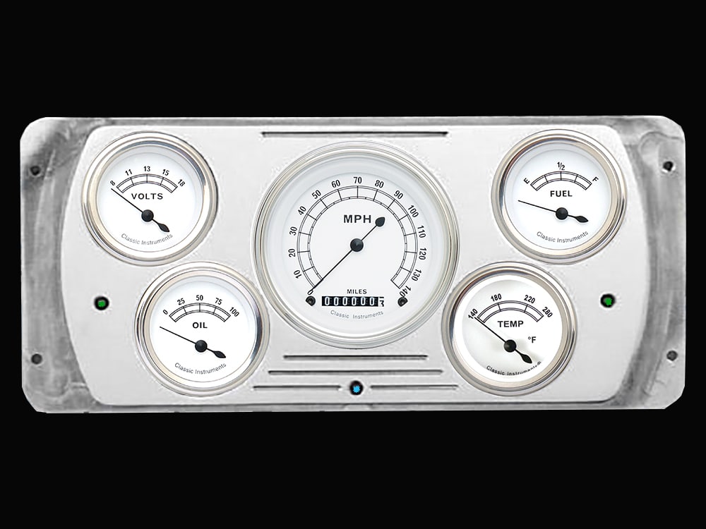 Includes aluminum dash insert, Classic Instruments gauges & LED lights (turn signal & high beam indicators).