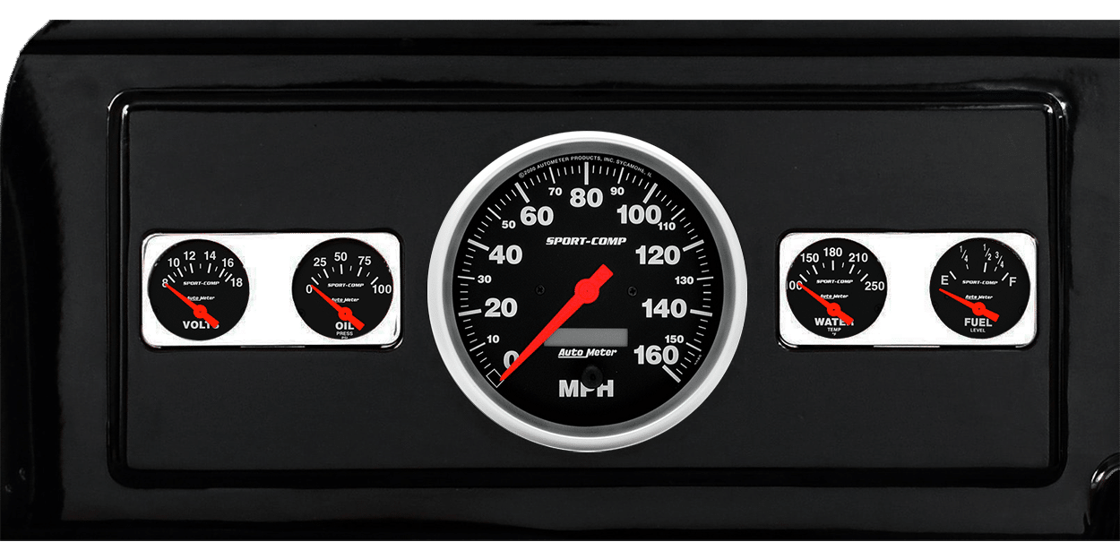 Includes aluminum gauge panel & Auto Meter Sport-Comp gauges.