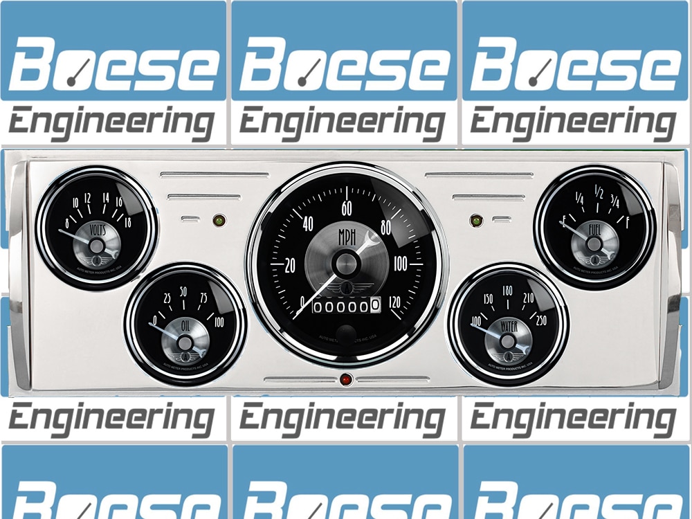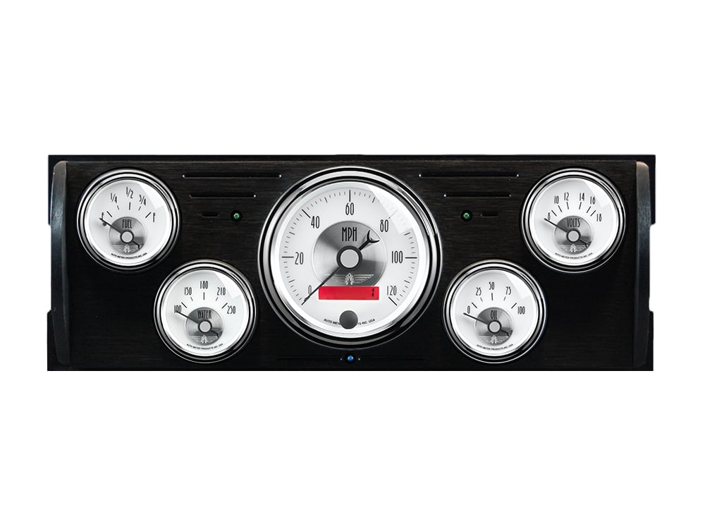 Includes aluminum dash insert, Auto Meter Prestige series gauges & turn signal/high beam indicators.