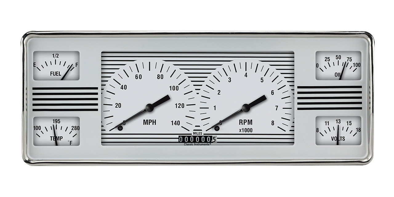Electronic circuitry incorporating Classic Instruments’ Zeus Speedometer Technology (ZST)™ provides calibration at the touch of a button and ensures the smoothest pointer operation. ZST accepts any known speed signal such as a pulse generator, VSS, ECM, or GPS without the need for an additional interface.