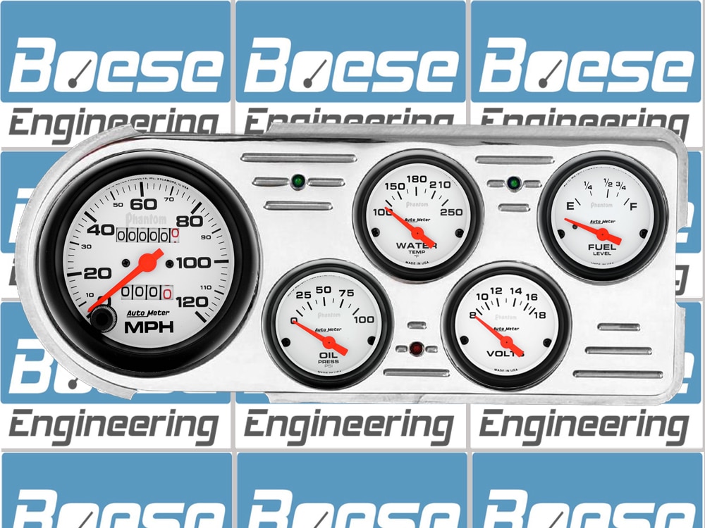 Includes aluminum gauge panel, Auto Meter Phantom gauges, & LED lights (turn signal & high beam indicators).
