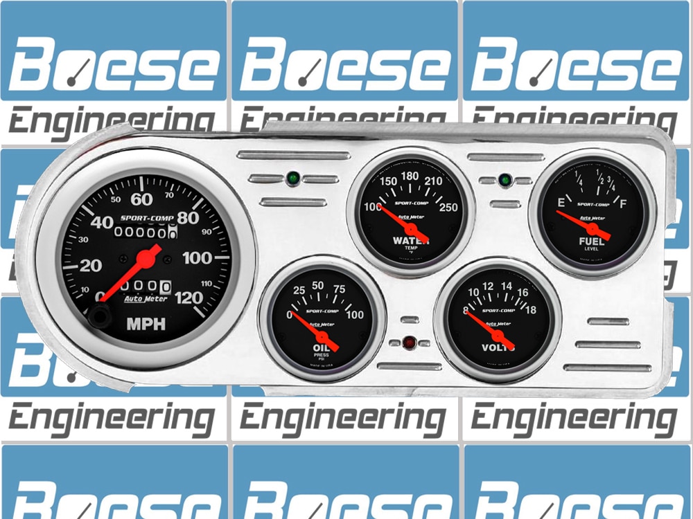Includes aluminum gauge panel, Auto Meter Sport-Comp gauges, & LED lights (turn signal & high beam indicators).