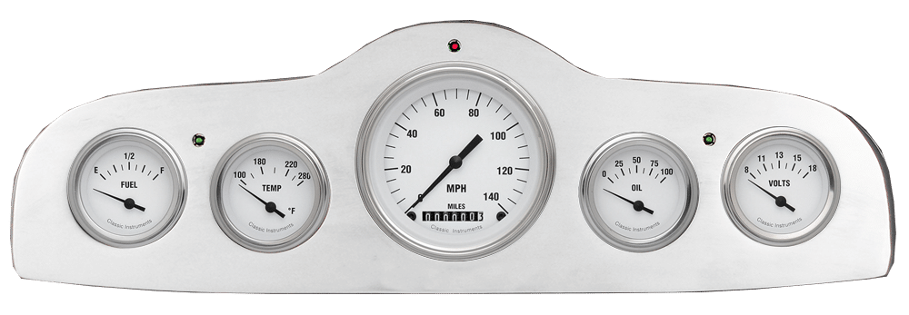 Includes aluminum dash insert, Classic Instruments gauges & LED lights (turn signal & high beam indicators).