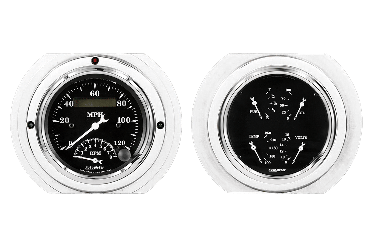 - 3 3/8” electric 120 MPH / 8,000 RPM speedometer/tachometer combination gauge