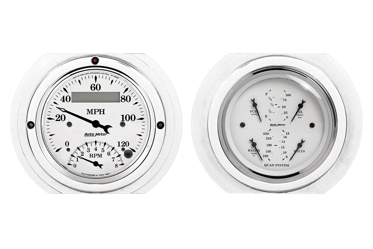1951-1952 Plymouth Car Aluminum Gauge Panel w/ Auto Meter Arctic White Gauges