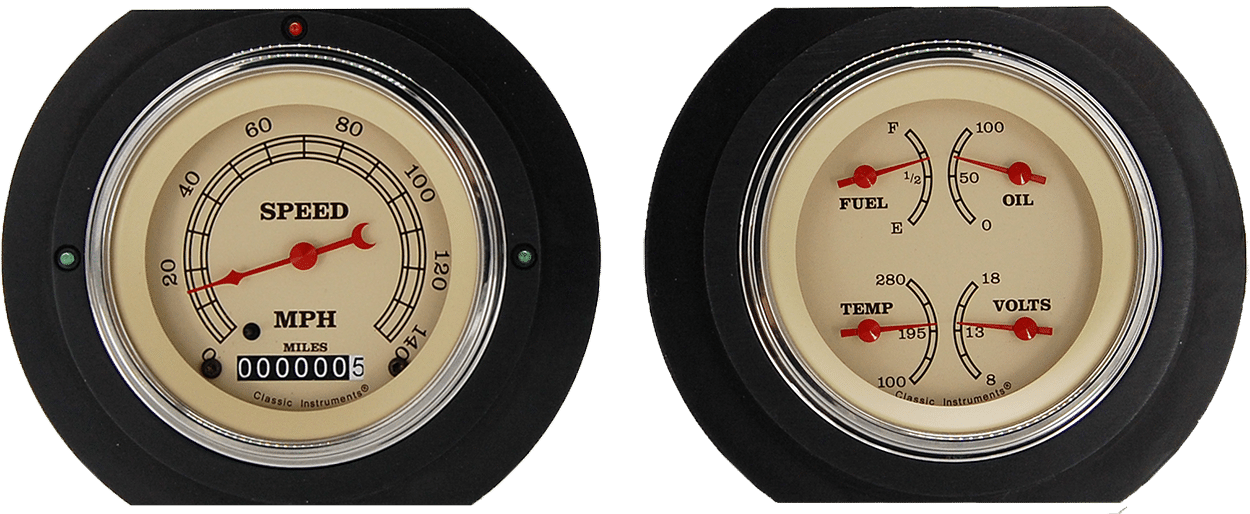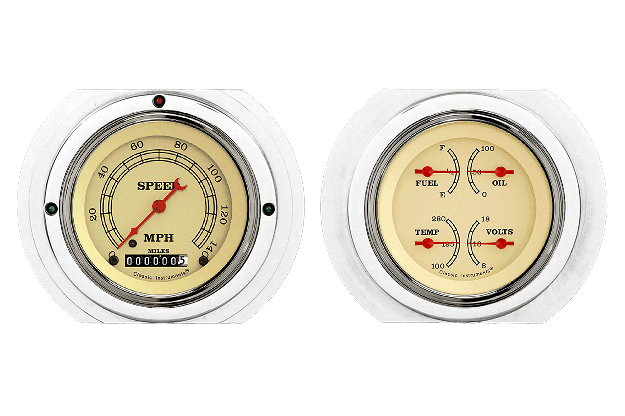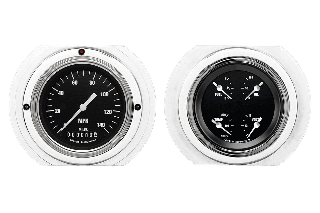 Includes aluminum dash insert, Classic Instruments gauges & LED lights (turn signal & high beam indicators).