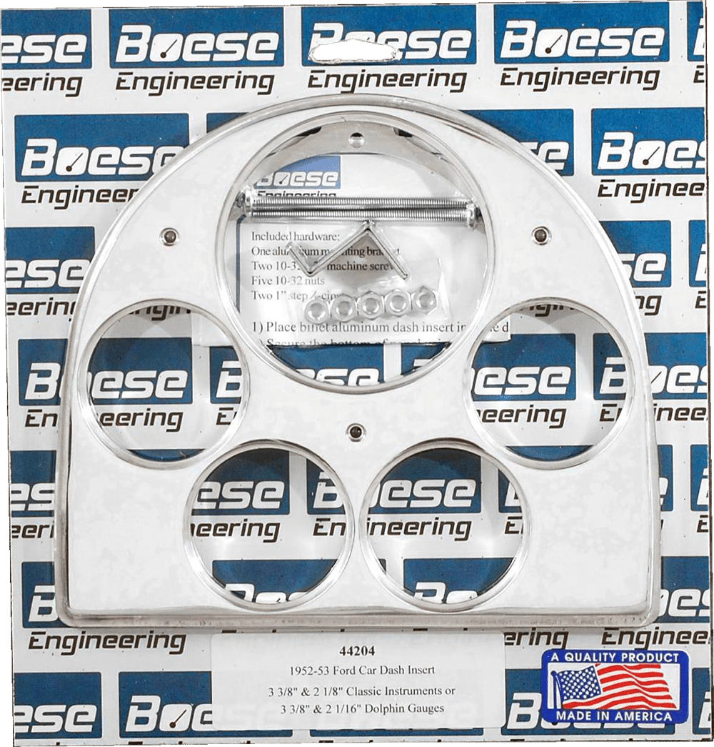 | Gauges Accepted | 3 1/8" & 2 1/16" Auto Meter Street Rod series, 3 3/8" & 2 1/16" Auto Meter Street Rod series, 3 3/8" & 2 1/16" Auto Meter "Super Bezels", 3 3/8" & 2 1/8" Classic Instruments, 3 3/8" & 2 1/16" Dolphin, 3 3/8" & 2 1/16" Dakota Digital VHX |
