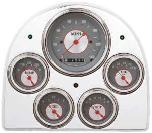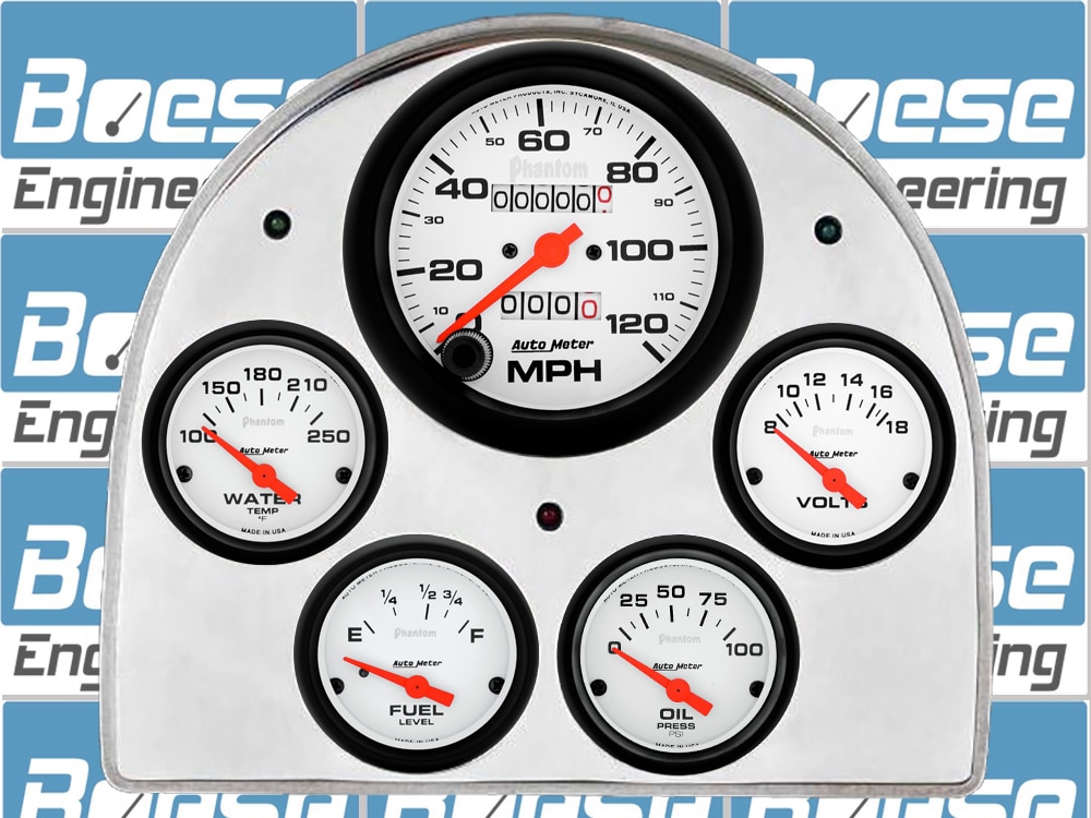 Includes aluminum gauge panel, Auto Meter Phantom gauges, & LED lights (turn signal & high beam indicators).