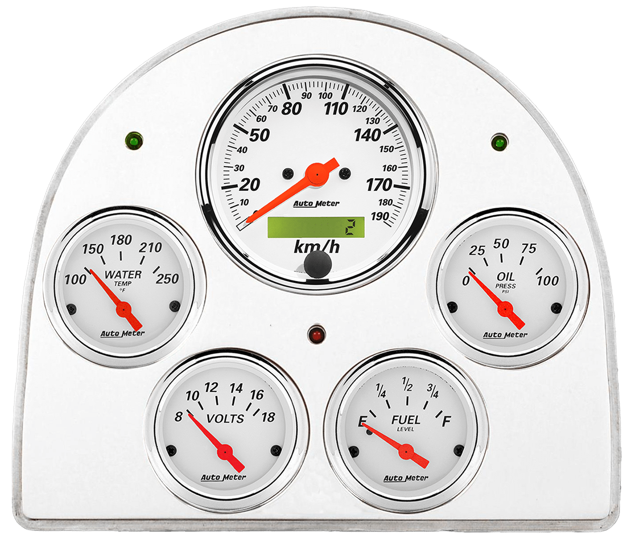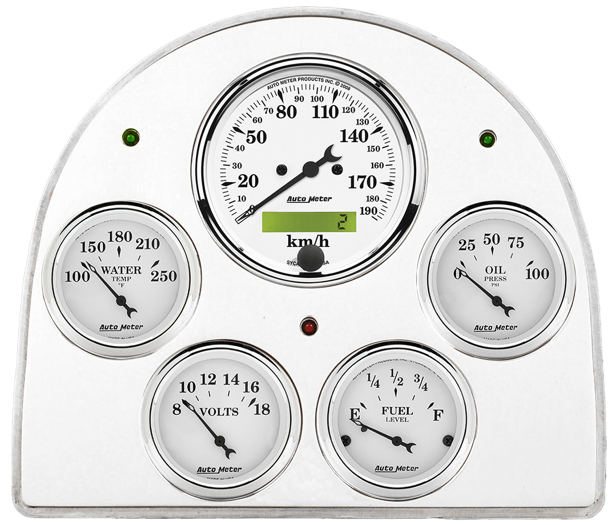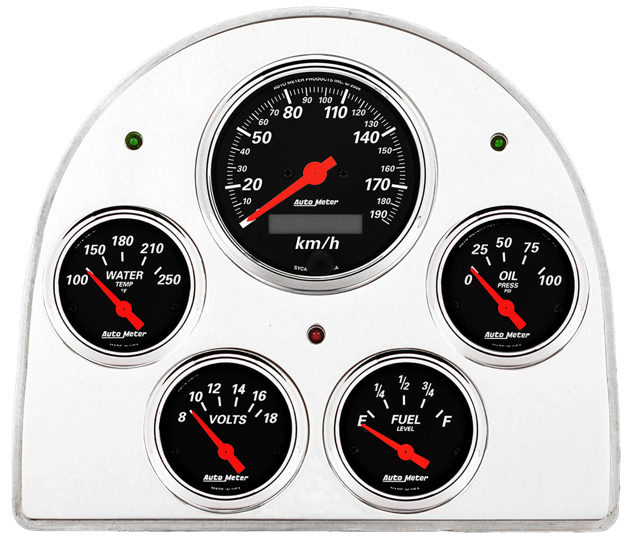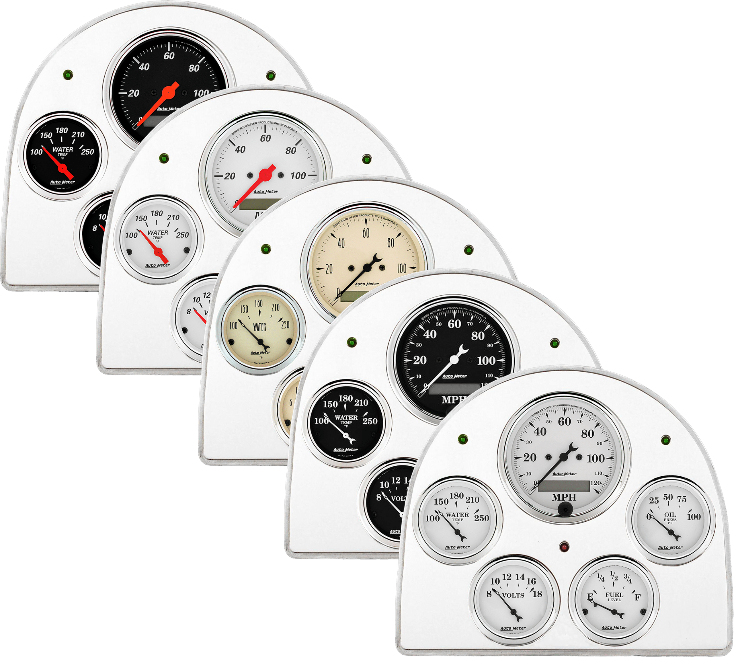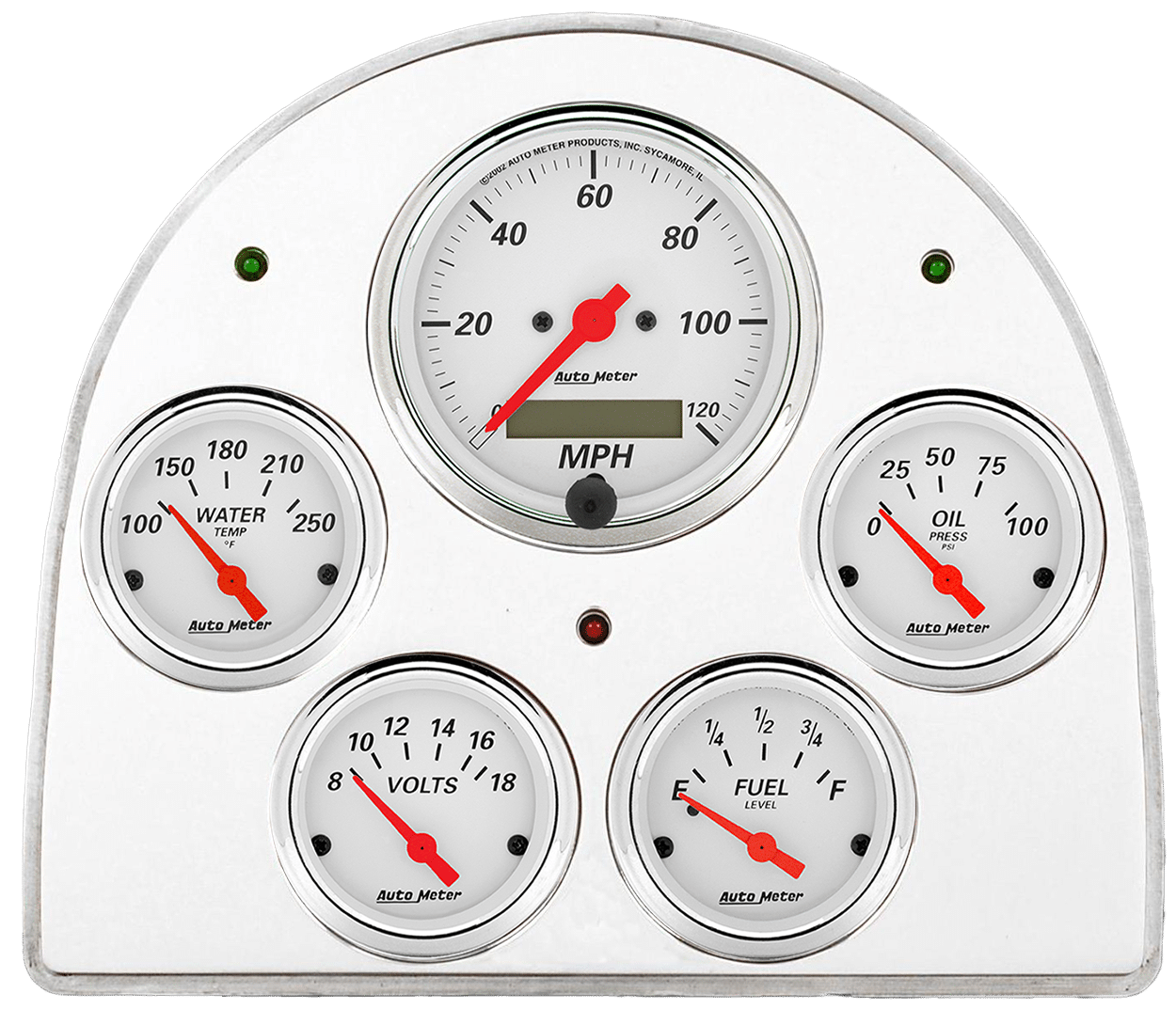 Includes aluminum dash insert, Auto Street Rod series gauges & turn signal/high beam indicators.