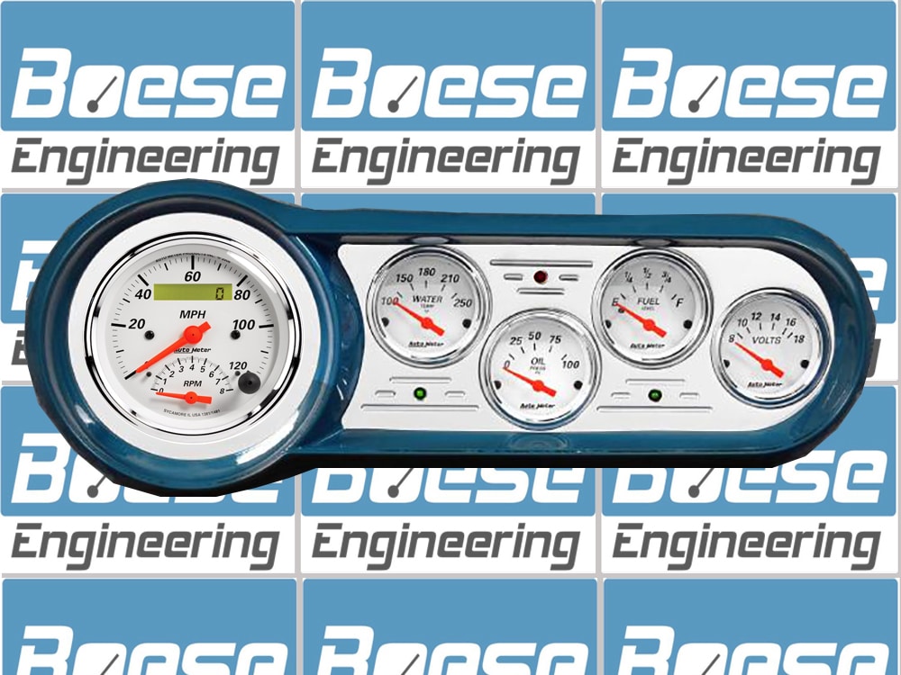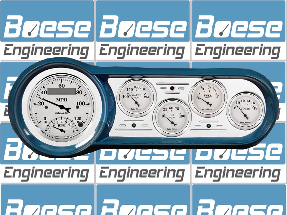 Includes aluminum dash insert, Auto Meter Street Rod series gauges and LED lights (turn signal & high beam indicators.).