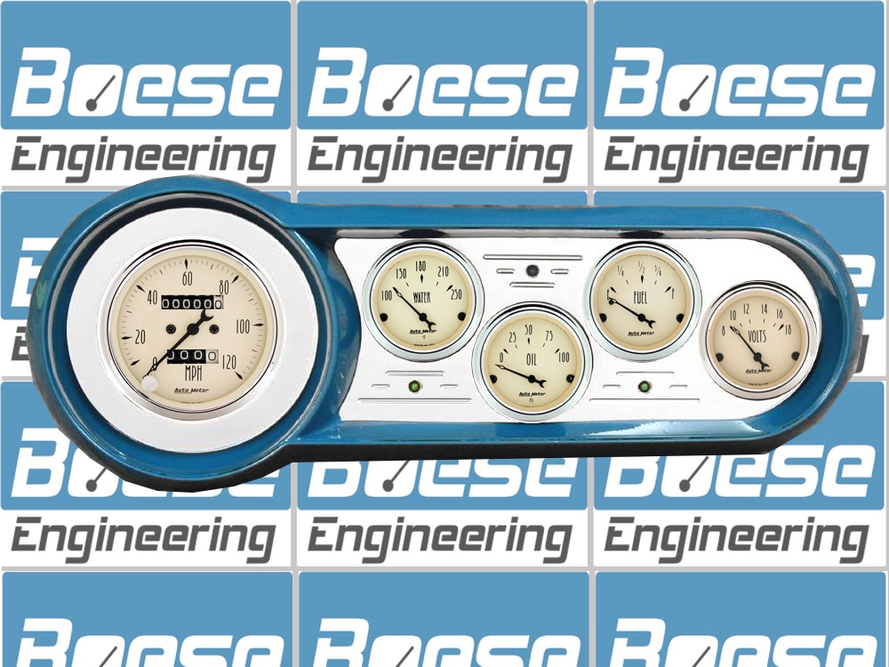 Includes aluminum dash insert, Auto Street Rod series gauges & turn signal/high beam indicators.
