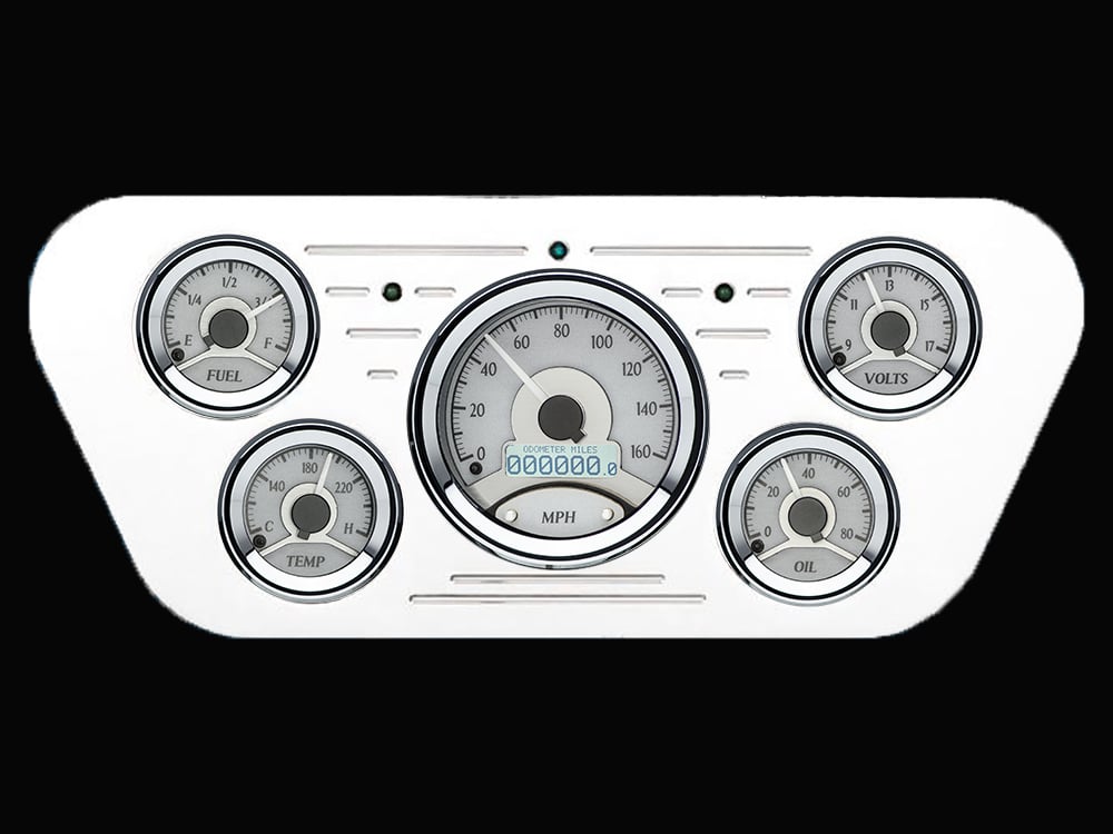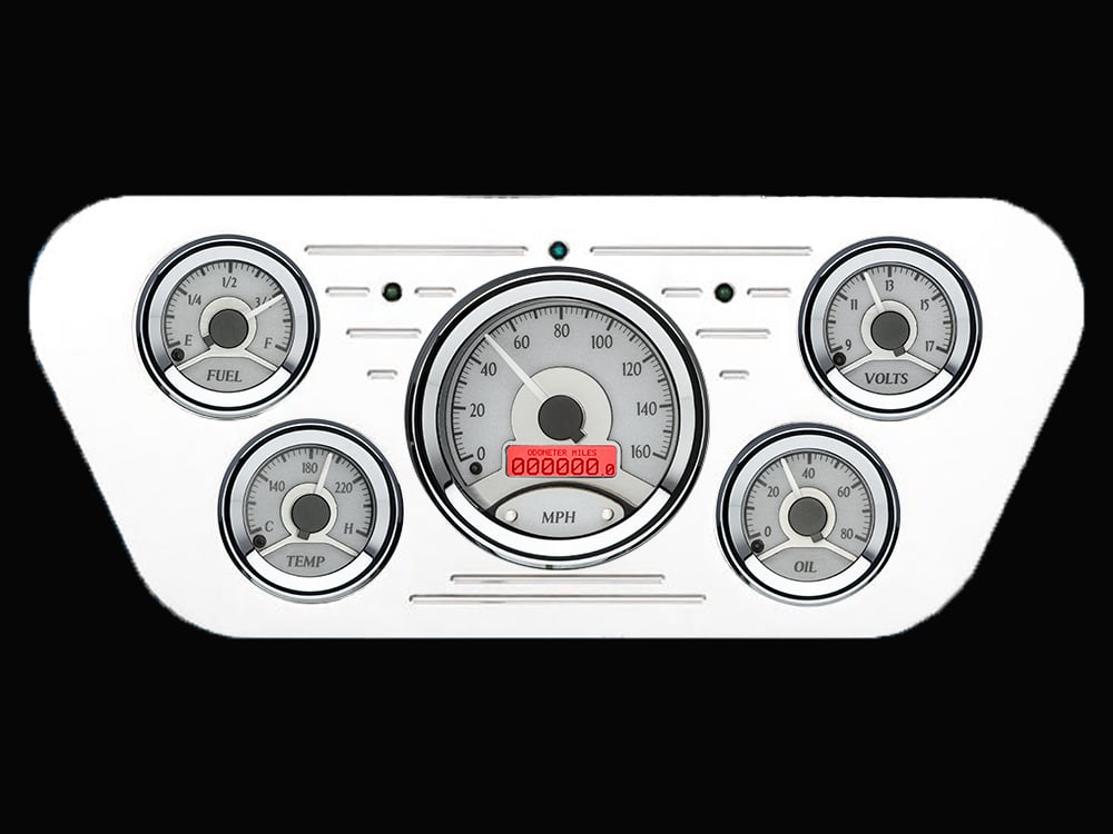 Includes aluminum dash insert, Dakota Digital VHX-1050 Silver Alloy 5 gauge round kit.