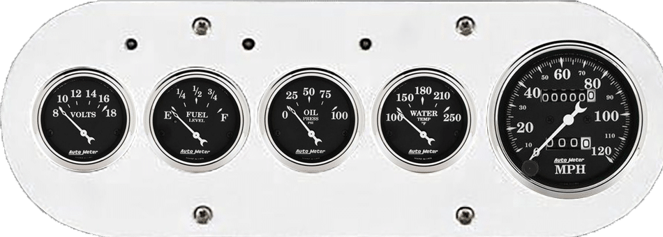 Includes aluminum dash insert, Auto Street Rod series gauges & turn signal/high beam indicators.