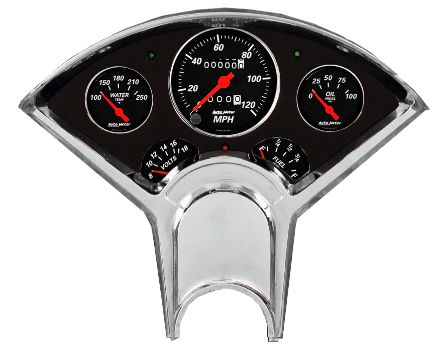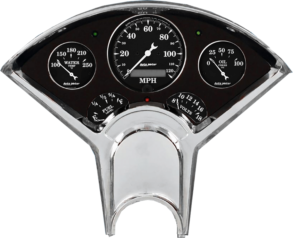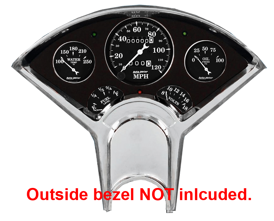 Includes aluminum dash insert, Auto Street Rod series gauges & turn signal/high beam indicators.