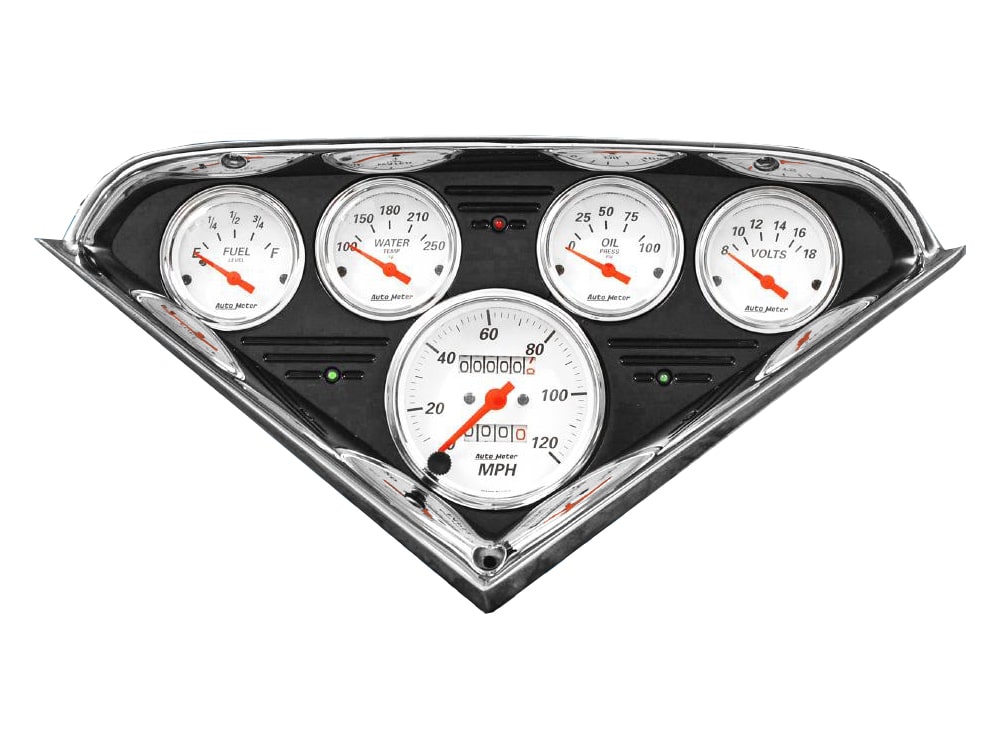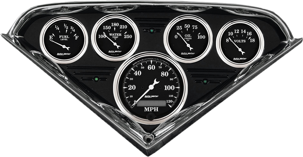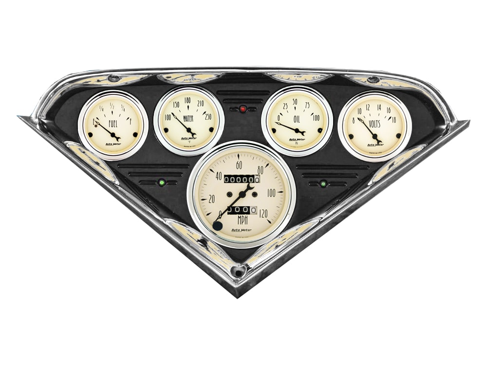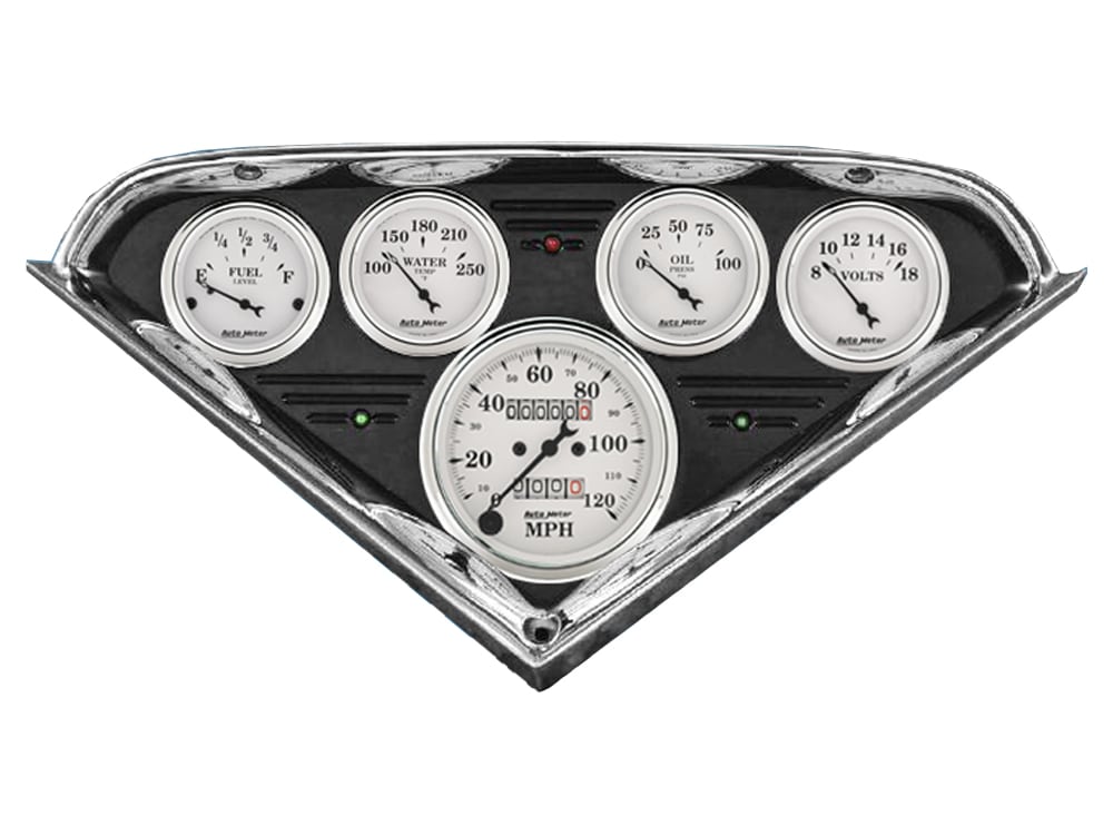 Includes aluminum dash insert, Auto Street Rod series gauges & turn signal/high beam indicators.