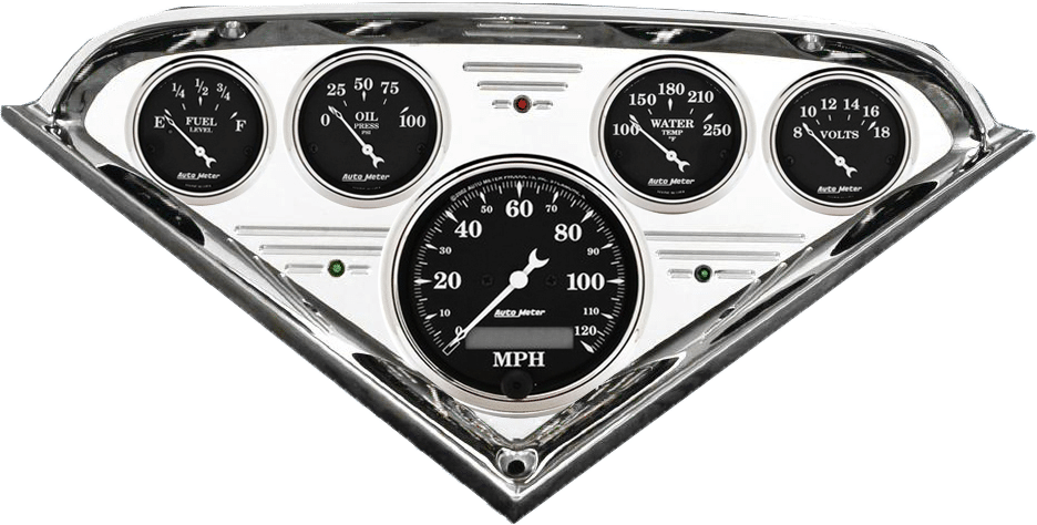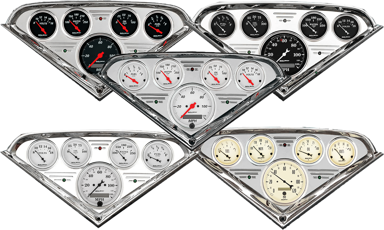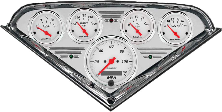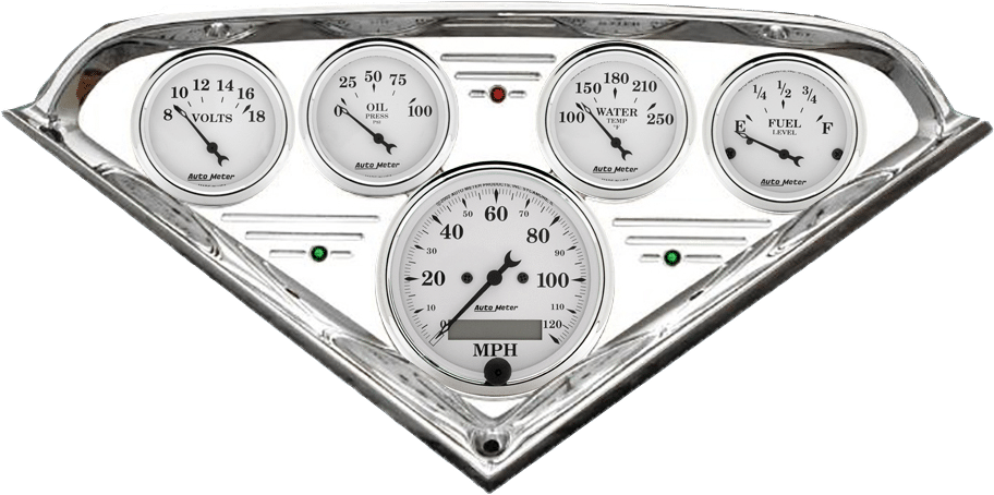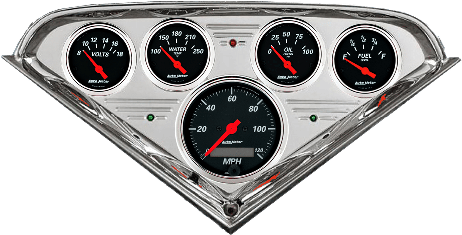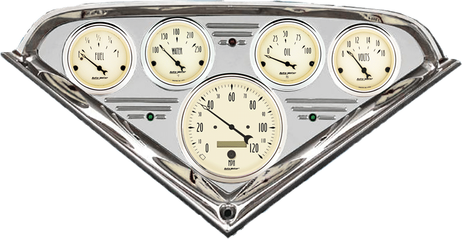 Includes aluminum dash insert, Auto Street Rod series gauges & turn signal/high beam indicators.
