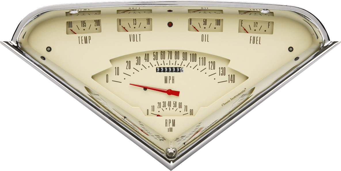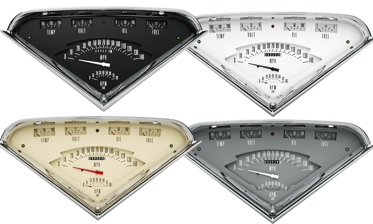 Classic Instruments lends its style and quality to the 1955-1959 Chevrolet Task-Force Pickups, Suburbans and Panel Trucks. Tach-Force packages are complete retrofit units, incorporating a tachometer and LED lighting, while retaining an original look.