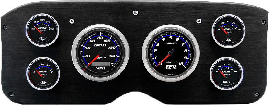 Includes aluminum dash insert, Auto Meter Cobalt gauges, & turn signal/high beam indicators.
