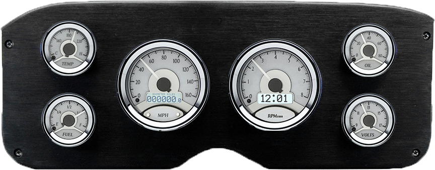 Includes aluminum dash insert, Dakota Digital VHX-1060 Black Alloy 6 gauge round kit.