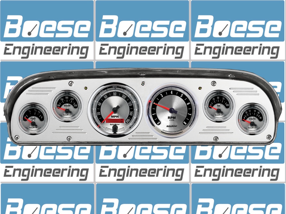 Includes aluminum gauge panel, Auto Meter American Muscle gauges, & LED lights (turn signal & high beam indicators).