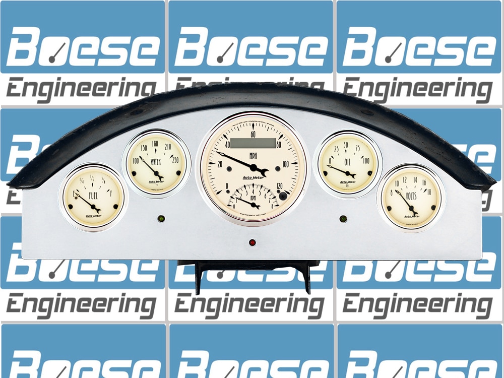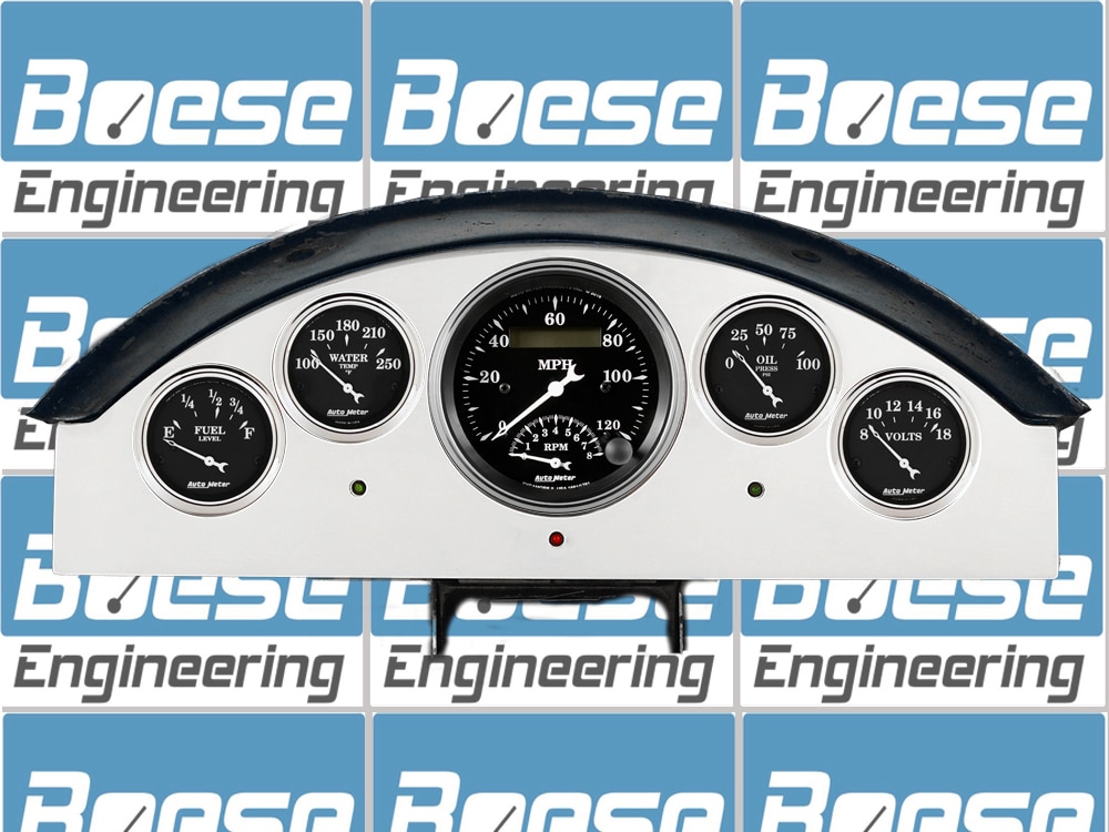 Includes aluminum dash insert, Auto Meter Street Rod series gauges and LED lights (turn signal & high beam indicators.).