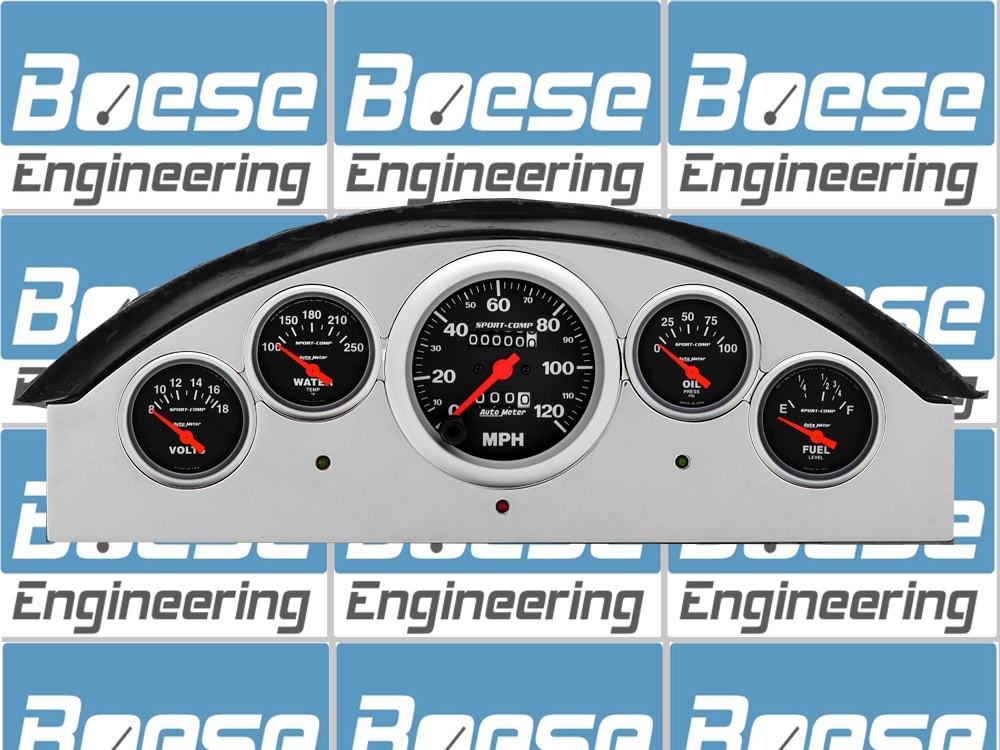 Includes aluminum gauge panel, Auto Meter Sport-Comp gauges, & LED lights (turn signal & high beam indicators).