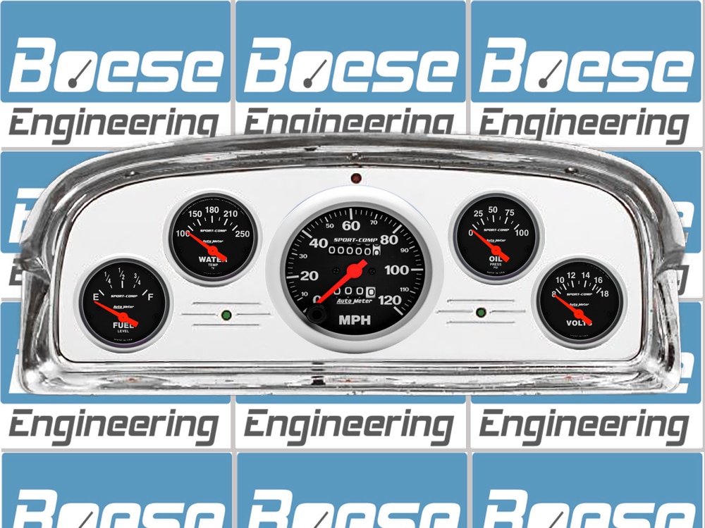 Includes aluminum gauge panel, Auto Meter Sport-Comp gauges, & LED lights (turn signal & high beam indicators).