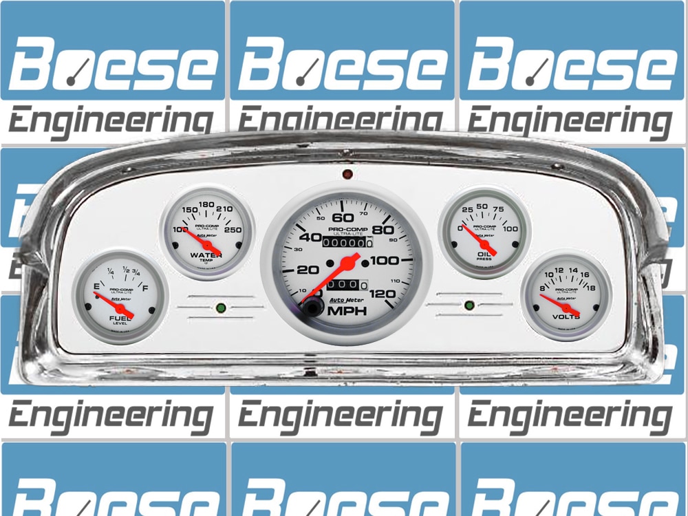 Includes aluminum gauge panel, Auto Meter Ultra-Lite gauges, & LED lights (turn signal & high beam indicators).