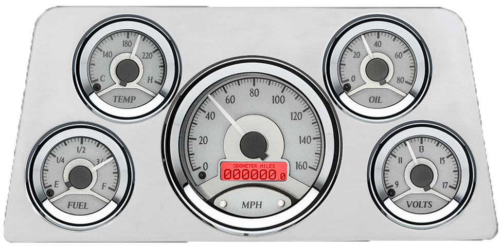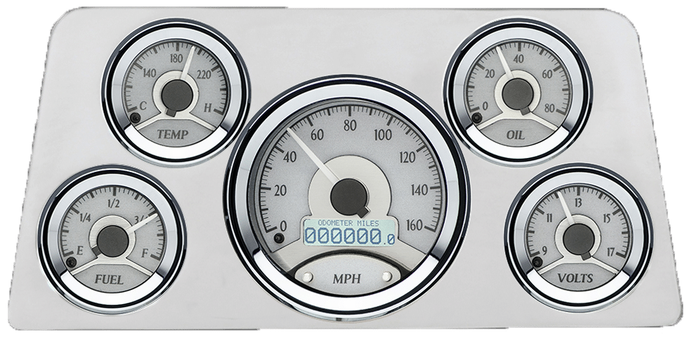 1940 Chevy Car Billet Aluminum Gauge Panel w/ Dakota Digital VHX-1050 Silver Alloy Gauges