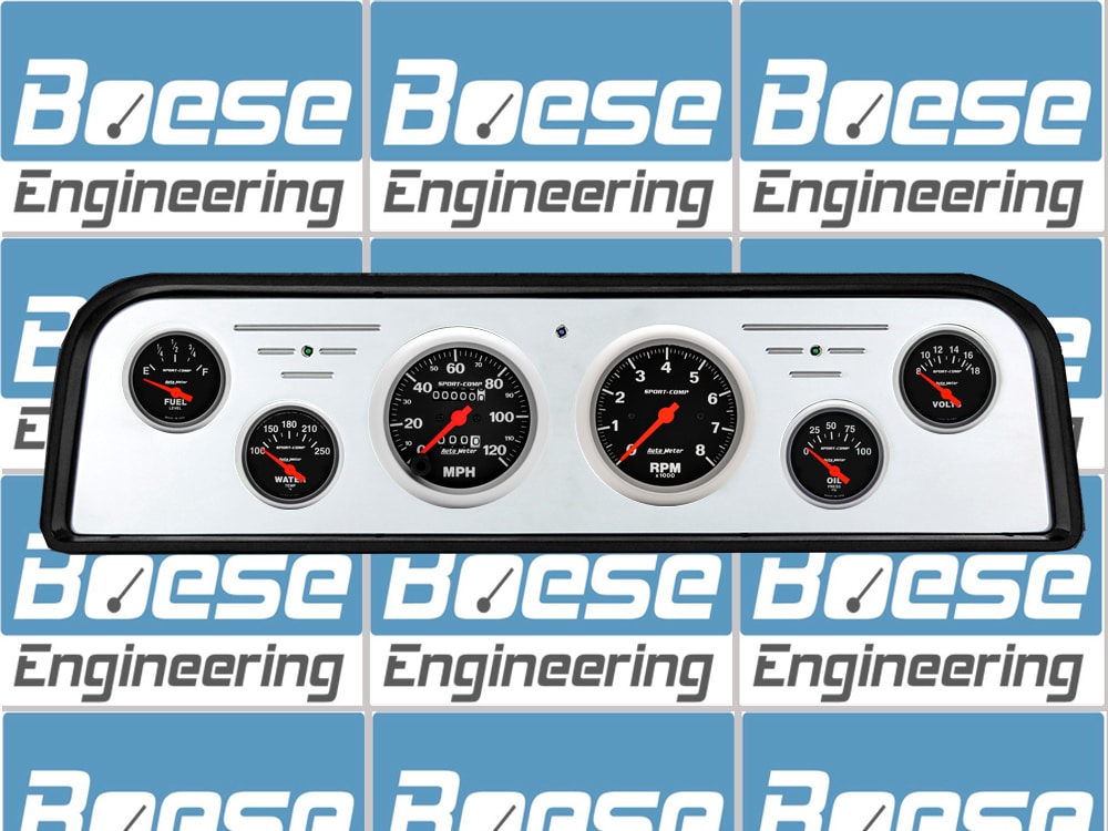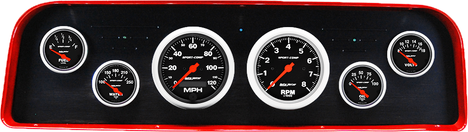 Includes aluminum gauge panel, Auto Meter Sport-Comp gauges, & LED lights (turn signal & high beam indicators).