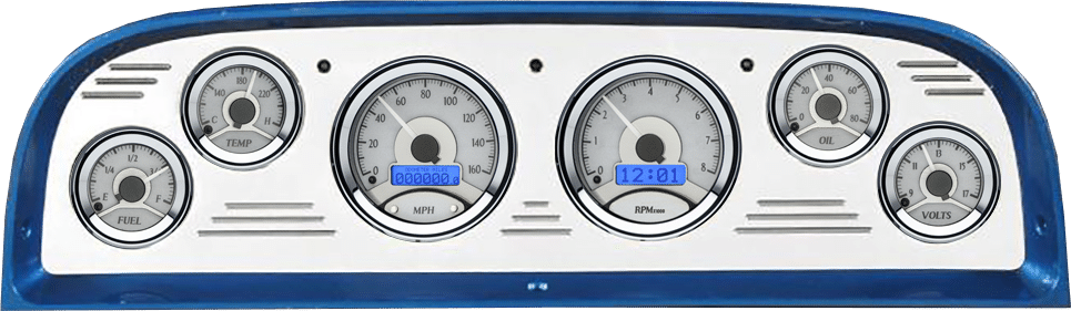 1940 Chevy Car Billet Aluminum Gauge Panel w/ Dakota Digital VHX-1050 Silver Alloy Gauges