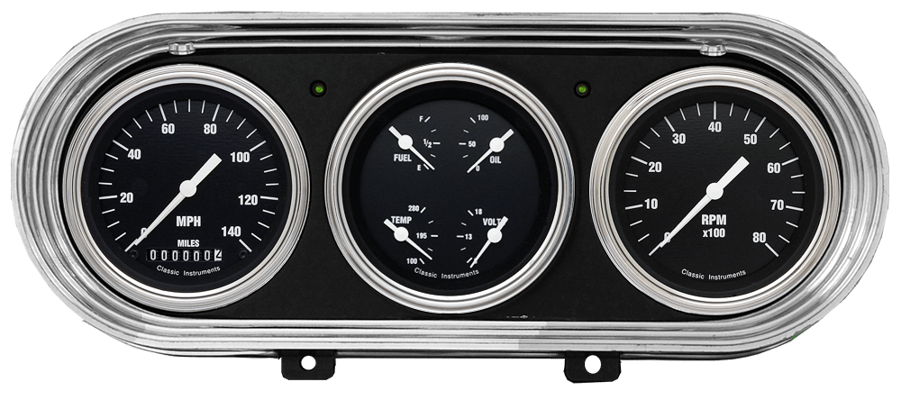 Includes aluminum dash insert, Classic Instruments gauges & LED lights (turn signal & high beam indicators).
