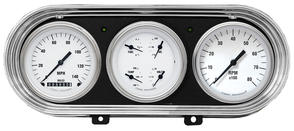 | Fuel Gauge Options | 240-33 ohms (includes sender), 0-90 ohms (late GM), 0-30 ohms (early GM), 75-10 ohms (pre-87 Ford) |