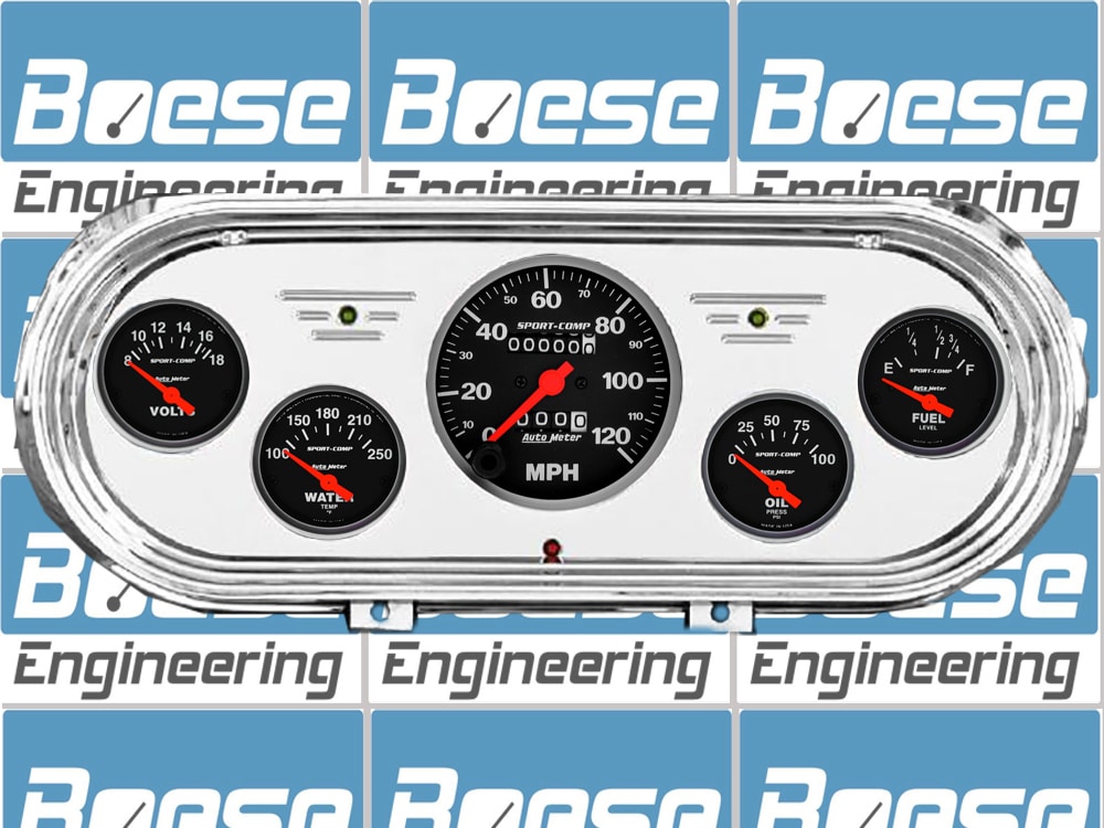 Includes aluminum gauge panel, Auto Meter Sport-Comp gauges, & LED lights (turn signal & high beam indicators).