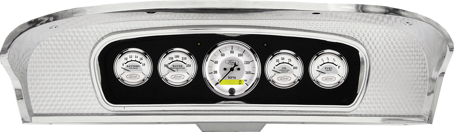 1949-1950 Ford Car Billet Aluminum Gauge Panel w/ Auto Meter Ford Masterpiece Silver Gauges