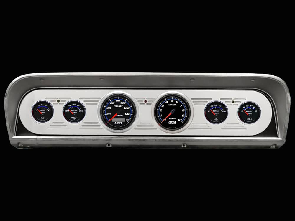 Includes aluminum dash insert, Auto Meter Cobalt gauges, & turn signal/high beam indicators.