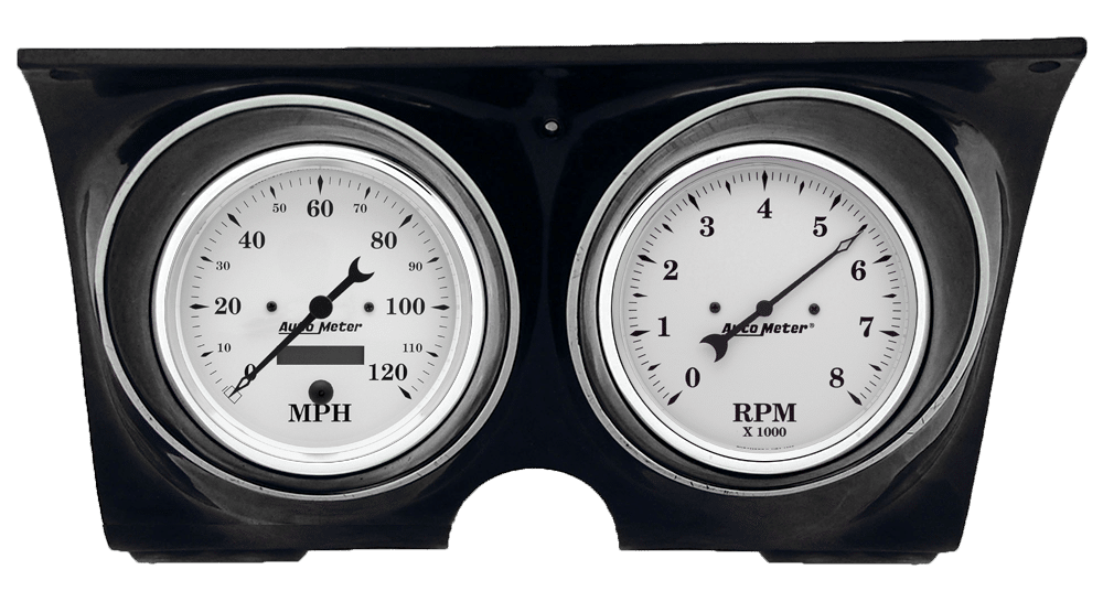 Includes aluminum adapter panels & Auto Meter Old Tyme White gauges.