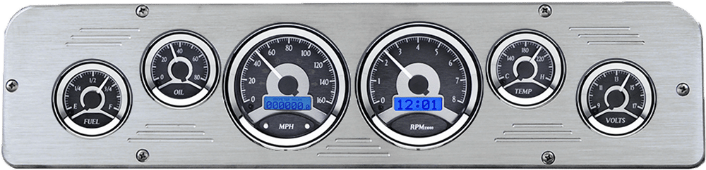 Includes aluminum dash insert, Dakota Digital VHX-1060 Black Alloy 6 gauge round kit.